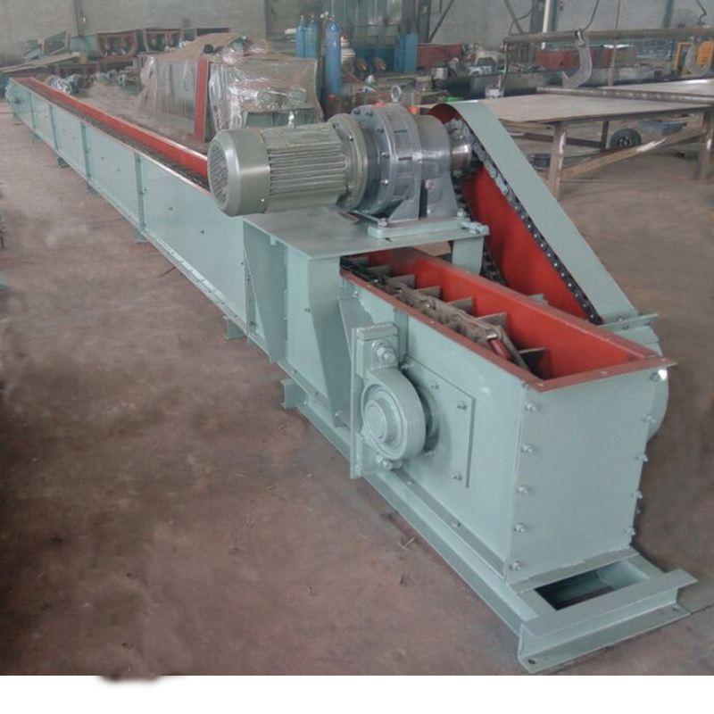 物料經(jīng)設(shè)備進料口均勻的進入槽體底部,由從機尾向機頭方向作封閉連續(xù)運行的承載刮板輸送鏈講物料從進料口處連續(xù)均勻的輸送至出料口排除,可實現(xiàn)多點進料、多點卸料。